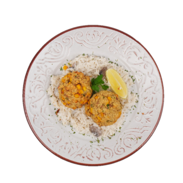 -quinoa balls with mushroom risotto: quinoa, onion, corn, parsley, breadcrumbs, salt, pepper, rice, mushrooms, vegetable cream.